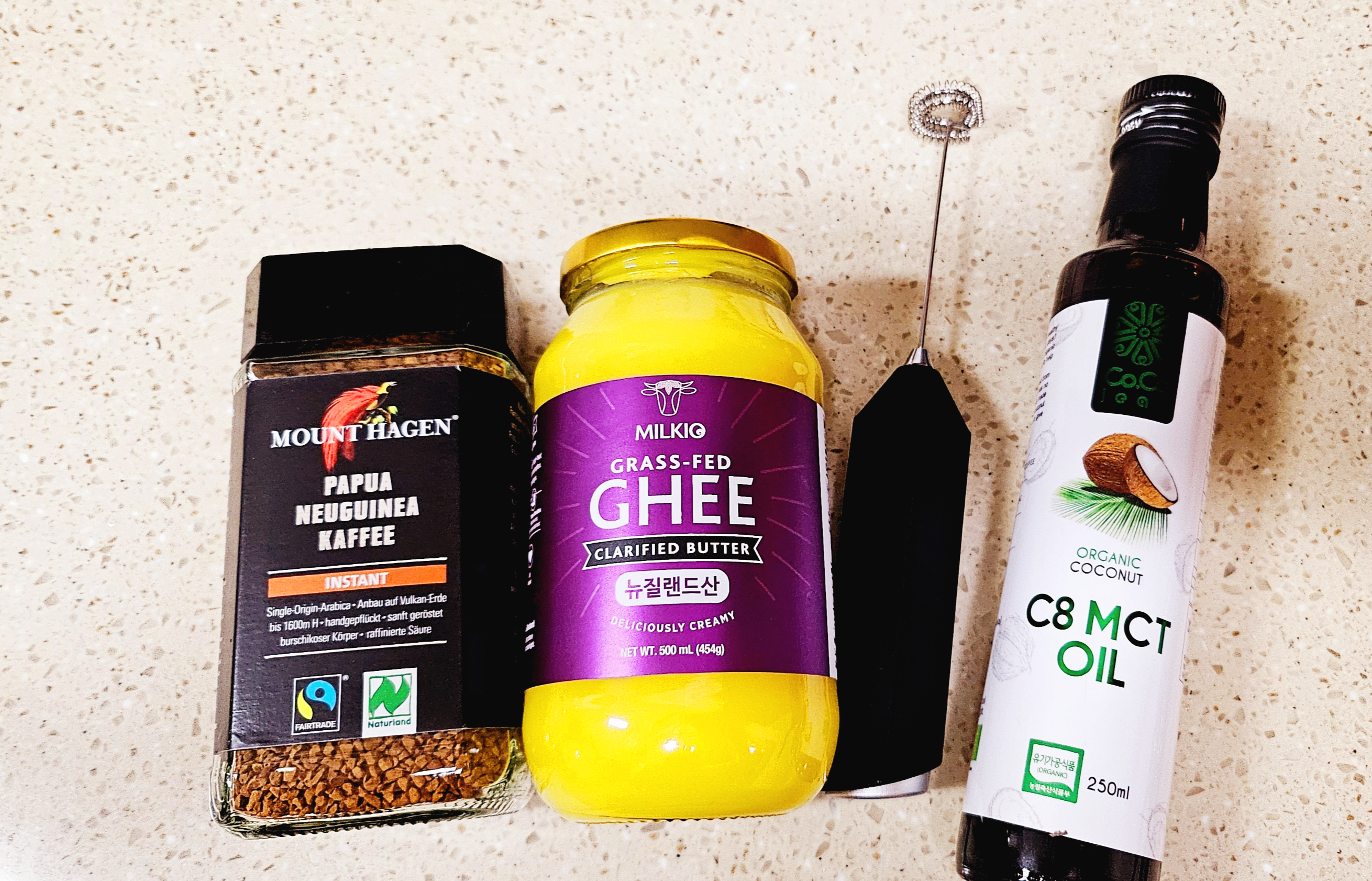 간단히 말해 커피에 버터와 MCT 오일을 섞은 고지방 커피로, 다이어트, 집중력 향상, 식욕 억제 효과가 있다고 알려져 있는데요,