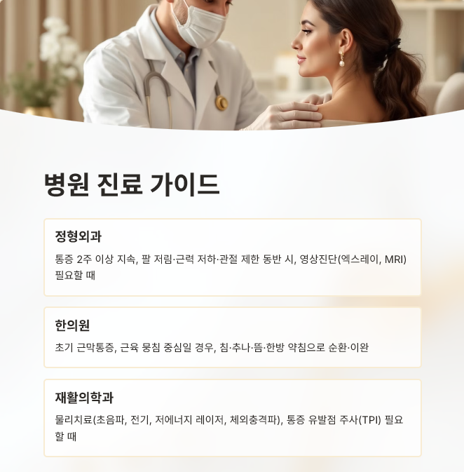 • 도수치료·물리치료: 근육 이완, 정렬 회복