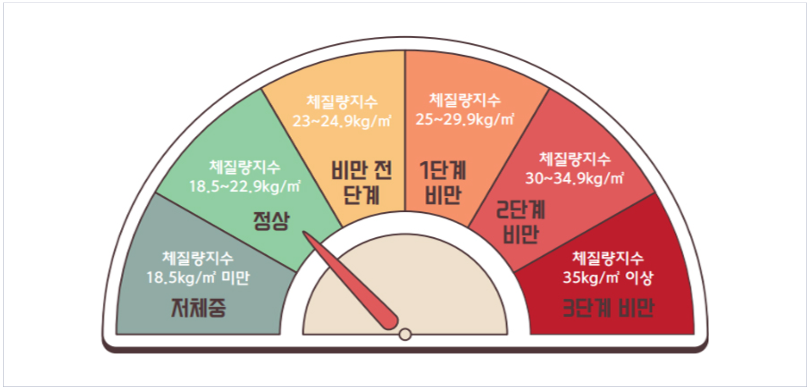우리나라에서는 대한비만학회 기준에 따라 BMI를 다음과 같이 분류하고 있어요: